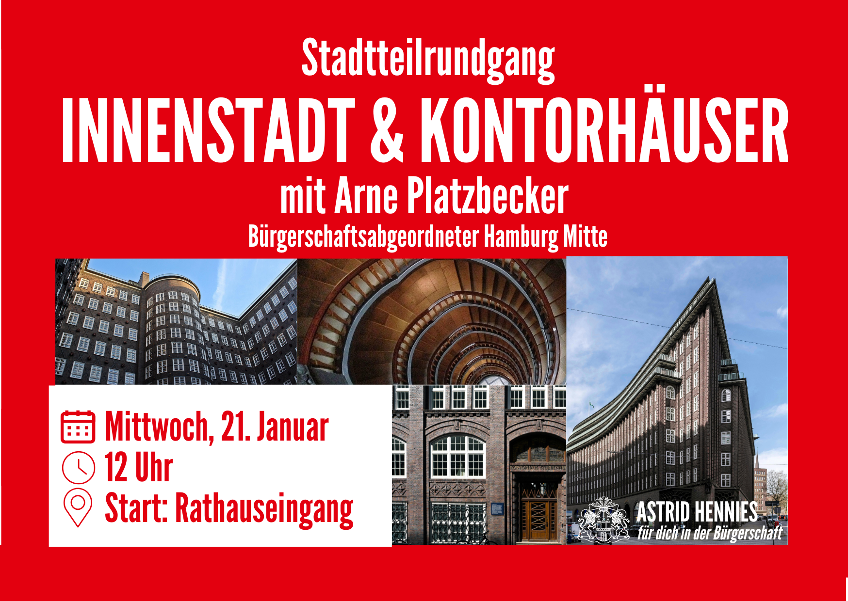 Sehr herzlich lade ich gemeinsam mit meinem Bürgerschaftskollegen Arne Platzbecker aus Hamburg Mitte am Mittwoch, den 21. Januar 2026, zu einem Rundgang durch die Hamburger
