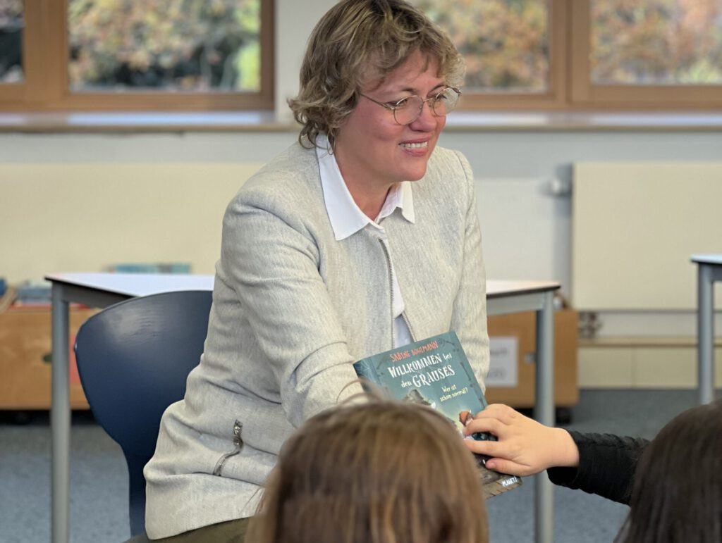 Anlässlich des Bundesweiten Vorlesetags habe ich heute in der Grundschule Brockdorffstraße vorgelesen. Die Klasse 2d hörte mir gespannt bei dem Buch „Willkommen bei den Grauses“ von Cornelia Funke zu.